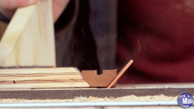 Cut a gap in the stock wide enough for the bolt and half the diameter of the bolt. For comfort, I opted to cut the corners off the handle, but this step is optional. To do this, I used Bitesize 300 (link to video here). Once shaped, cut the stock in half and glue the two pieces together.